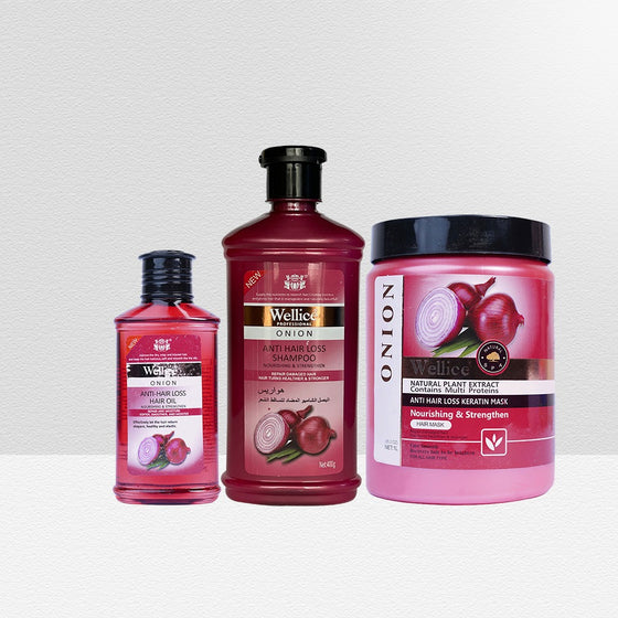 Wellice Hair Loss Solution with Onion Extract (Shampoo, Oil & Mask)